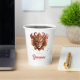 Améliorez votre prochaine occasion spéciale avec notre motif de masque rouge et or exquis, élégamment exposé sur un arrière - plan blanc immaculé. Cette luxueuse tasse en papier ajoute une touche de sophistication et de mystère à tout événement, ce qui en fait le choix parfait pour des boules mascarades, des soirées costumées ou une Quinceanera à thème masqué comme montré ici. Recherchez ID1031 pour voir d'autres produits et couleurs pour cette conception.