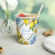 Méditorial méditerranéen Majolica citrons nuptiale douche personnalisée monogramme imprimé tasses modèle, style italien Capri, Côte Amalfi, Sicilia tasses de fête thématique décoration de table personnalisée pour les réceptions d'été.