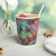 Ces tasses en papier ont une conception abstraite d'un mélange brumeux de couleurs, y compris les verts, les roses et les jaunes avec des lignes gris tourbillon.