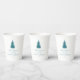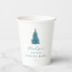 Ces simples tasses en papier quinceanera d'hiver "merci beaucoup de neige" sont dotées d'un magnifique arbre de Noël bleu turquoise avec un topper de flocon de neige et de votre nom personnalisé avec un élégant script de remerciement bleu.