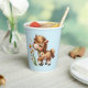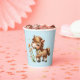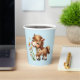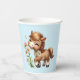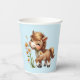 Tasses en papier avec une adorable illustration. Un petit poney marron se régalant de marguerites.