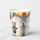 Cette tasse en papier comporte une mignonne souris avec une veste et un pantalon, tenant beaucoup de ballons dans ses mains. Art numérique - aquarelle. Un motif super mignon pour les enfants ! Jolies tasses personnalisables pour l'anniversaire de l'enfant, le baby shower et plus !