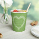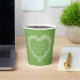 Mistletoe couronne de coeur tirant vertes et blanches tasses en papier de mariage d'hiver avec votre propre photo au verso. Ajoutez votre nom de couple et votre date de mariage sur un arrière - plan vert avec une couronne de coeur blanc et un texte blanc sur un côté et une photo sur l'autre. Autres couleurs et articles mariages correspondants disponibles. © Dessin et dessin original de Sarah Trett pour www.mylittleedenweddings.com sur Zazzle.