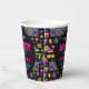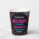 Modern Retro Neon 80’s Birthday Paper Cups for adults. Bright neon colors and retro style, perfect for 80s-themed birthday parties.