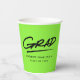Coupes de papier moderne avec "Grad" en noir, écriture manuscrite avec pointillé souligné sur un arrière - plan vert citron (ou couleur de votre choix). Personnalisez les tasses de papier de graduation vert citron en ajoutant le nom du diplômé et l'année de graduation. Le dessin se répète à l'arrière. Les tasses personnalisées sont parfaites pour les fêtes de fin d'études secondaires et collégiales !