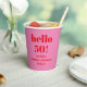 Gobelets En Papier Moderne Gras brillant rose rouge 50e anniversaire