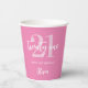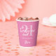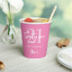 Un simple nom moderne personnalisé tasses de papier 21ème anniversaire avec typographie de script de calligraphie élégante et design minimaliste en rose et blanc.