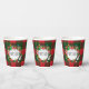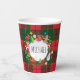 Monogram (Personalized) - Merry Christmas and Happy New Year! XMAS Picture decorated with Christmas magic symbols, Winter Holiday gifts elements pattern, snowman, christmas tree, christmas ball, reindeer, snowflakes, Christmas Sleigh, Christmas stars, and more festive characters on Christmas checkered square Scottish tartan ornaments, Scotland pattern (green & red color). Original trendy graphic design. New Year's Eve party Decoration Crafts & Party Supplies > Party Supplies > Tableware > Paper Cups