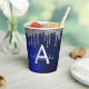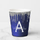 Gobelets En Papier Monogramme à paillettes et scintillement bleu mari