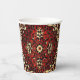 Cette tasse en papier présente un design de tapis orientaux délicieux dans un décor de couleur rouge foncé et crème captivant. Alma Wad s'est inspirée d'un livre ancien et l'a habilement transformé en un design qui peut maintenant être apprécié sur une variété de produits. C'est comme avoir un morceau d'histoire entre vos mains, avec une touche d'allure artistique d'Alma.