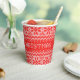 Pour un peu de plaisir de vacances, cette tasse en papier a un motif de couture "Chandail de Noël moche" qui comprend de gros flocons de neige et le texte "Noël". Cherchez ID208 pour voir d'autres produits avec ce design et plus de motifs de points croisés.