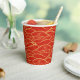Belle tasse en papier avec des fleurs d'or et des motifs d'ondes traditionnels chinois sur un arrière - plan rouge. Parfait pour la fête du Nouvel An chinois.