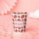 Le motif de fraises rouges de Destei est de couleur arrière - plan rose pâle. Il y a aussi trois zones de texte personnalisables. Cette conception est idéale pour les périodes d'été, par exemple.