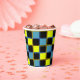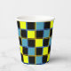 Gobelets En Papier Motif géométrique à damiers bleu jaune