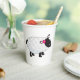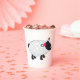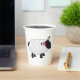 Un mouton à visage noir avec beaucoup de laine blanche et une fleur dans les cheveux. Cette conception semble vraiment efficace sur ces tasses de papier