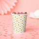 Cette tasse de papier poché polka dans la nature inspiré et des teintes neutres de genre de corail, bleu ciel, vert herbe, jaune doré et blanc crémeux accent n'importe quel thème de fête et s'harmonise parfaitement avec la suite Natural Wonder de Wild and Three anniversaire décor.