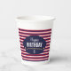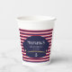 Celebrate your child’s special day with this nautical-themed paper cup featuring classic navy, red, and white stripes and a captain hat emblem. Perfect for sailor, cruise, or ocean-inspired birthday parties, this customizable cup adds a fun and stylish touch to your party table. Personalize with your child’s name and age for a unique celebration keepsake.