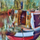 Un joli design artistique d'un bateau à étroit amarré dans une partie paisible du canal.