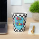 Neon 90's retro Six est une vibe coupes de papier de 6ème anniversaire avec les coeurs, marguerites, boule disco et arrière - plan vérificateur.