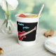 Serve up drinks at your next gathering with these festive paper cups showcasing the vibrant glowing electric guitar graphic. The unique retro lighting and pink and blue color scheme add a fun, energetic stage performance aesthetic to birthday parties, band celebrations, or music themed events. These disposable cups are a perfect accessory for complementing your eighties revival party decor and are a great way to celebrate stringed instrument modern artistry.
