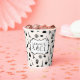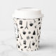 Les chic tasses en papier de fin d'année d'inspiration parisienne proposent un motif de cadeaux emballés, de petits oiseaux, des flocons de neige, des arbres de Noël, des croissants, des macarons, des roses, des tasses à café et bien sûr, la tour Eiffel, en noir et blanc d'hiver. "Joyeux Noel" (Joyeux Noël en français) apparaît dans le centre de la typographie lunatique moderne.