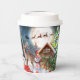 Christmas Red Truck Père Noël Rustic Winter Holidays Coffee Paper Cups présente un design hivernal rustique avec un camion rouge, un bonhomme de neige, un renne, un cabine, un sapin de Noël et Père Noël. Conçu par Evco Holidays www.zazzle.com/store/evcoholidays