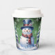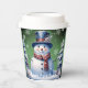 Sirotez vos boissons de vacances préférées avec un ensemble festif de coupes de papier de Noël Snowman de la forêt verte d'hiver. La conception de tasse en papier comprend un mignon bonhomme de neige dans un chapeau et écharpe de charme debout dans une scène de forêt hivernale avec la chute de neige. Autres cadeaux et objets de vacances disponibles avec ce design aussi.