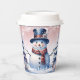 Sirotez vos boissons de vacances préférées avec un ensemble festif de tasses en papier de Noël Pink Winter Forest Snowman. La conception de tasse en papier comprend un mignon bonhomme de neige dans un chapeau et écharpe de charme debout dans une scène de forêt hivernale avec la chute de neige. Autres cadeaux et objets de vacances disponibles avec ce design aussi.