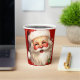 Tasses en papier avec une joyeuse illustration d'un Père Noël de style vintage aux joues rouges roses. portant son chapeau de Père Noël rouge classique et son grand ours blanc. Un spring de saint ajoute à l'esprit festif de fête de ce design.