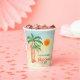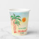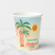 Fêtons Noël en juillet avec un barbecue ou une fête ! Ces tasses en papier coloré sont décorées de palmiers et de lampes à cordes sur un arrière - plan d'aquarelle. Facile à personnaliser. En créant notre oeuvre, vous ne trouverez pas cette image exacte d'autres créateurs. Aquarelle originale © Michele Davies.