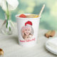 Une jolie tasse de papier de Noël fournit, avec un modèle photo, et une illustration de chapeau de Père Noël rouge et blanc, avec un script de calligraphie élégant, et typographie lunatique, un style simple minimaliste parfait pour les fêtes de vacances, et des célébrations de Noël pleines de fantaisie, un style traditionnel classique épuré et minimal.