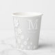 Gobelets En Papier Nom à relief floral blanc initiales personnalisées