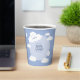 Tasses à fête en papier pour célébration de baby shower avec un design qui présente des nuages fantaisistes sur un fond de ciel bleu avec la future maman sur un nuage. Personnalisez tous les détails de la fête dans une police bleue élégante sur un fond rond coordonné pour la rendre vôtre. La tasse amusante et gaie fait partie d'une collection adorable à thème neutre pour bébé. Ne manquez pas l'occasion de vous amuser - commandez la vôtre aujourd'hui !