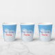 Des tasses en papier amusantes pour enfants avec des nuages moelleux flottant dans un beau ciel bleu. Parfait pour s'amuser au soleil. Ajoutez votre message personnel pour apporter un peu de plaisir supplémentaire à la table. Parfait pour les fêtes d'enfants.