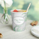 Tasses spéciales en papier réalisées dans un look argenté, blanc et vert marbré. Les graphismes d'un ovale blanc avec un cadre à l'aspect diamant ont du texte vert personnalisé prêt à être personnalisé pour votre événement.