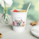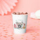 Ces mignonnes tasses de fête d'anniversaire sont équipées d'une caméra pastel avec des cupcakes d'anniversaire de chaque côté et les mots "oh snap" sur le dessus. L'arrière - plan est un motif de polkadot rose petit.