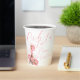 Ooh La La Paris gobelets pour réception de mariage avec des fleurs roses et la tour Eiffel et lettrage calligraphié.