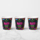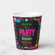 Custom Retro Neon 80’s Birthday Party Paper Cups. Personalized neon 80s theme drinkware perfect for adult milestone birthday celebrations.