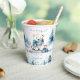 Ours polaire hiver arctique nous pouvons attendre passionnément baby shower vaisselle personnalisées modèle tasses de fête, aquarelle mignon ours polaire en peluche portant une écharpe bleue assis sur glace roche neigeuse neige pins baby shower d'accueil d'hiver panneau personnalisé baby shower tasses en papier