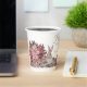 Peace on Earth Rabbit in Flowers La tasse rose présente l'illustration originale d'un lapin lapin paisible caché parmi les baies d'hiver, les fleurs et les poinsettias dans ce magnifique design de vacances. Cette belle oeuvre de vacances fait de la carte de vacances parfaite cette année avec un message que nous avons tous besoin d'entendre ce Noël. Texte élégant : "Paix sur Terre, bonne volonté à tous."