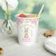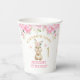 Bunny Fleur rose Premier Anniversaire Papier Cute un lapin tourne une tasse de papier d'anniversaire à thème avec un mignon lapin fourré, arrangements floraux roses, deux papillons, quelques points et un numéro de parties scintillant en faux or amovible. Cette tasse d'anniversaire à thème lapin est un ajout sucré pour une fête d'anniversaire à thème lapin à venir pour une petite fille.