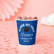 Coupes personnalisées en bleu et blanc pour une école secondaire, un collège ou une université. Customisez avec votre nom d'école et la classe de fin d'études sous l'élégante calligraphie pour un décor de célébration d'anciens élèves personnalisé.