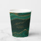 Cet ensemble de design mariage, avec son motif abstrait d'ondulations fluides et de veines d'or scintillant, rappelle les formations rocheuses et les gemmes étincelantes. La palette de couleurs à bijoux dans les tons vert émeraude ajoute à l'attrait. La tasse de papier coordonnée montrée ici a un arrière - plan abstrait tenant le texte optionnel de "Cheers to the happy couple" avec vos noms et la date du mariage. Recherchez ID903 pour voir d'autres choix de couleurs et coordonner des pièces pour cette collection de mariages unique.