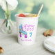 Coupe en papier de fête d'anniversaire de patinage super avec illustration d'un patin à roulettes rose et bleu rétro. Le texte dit "rouler en X(age)".