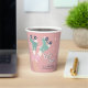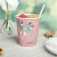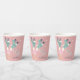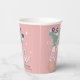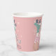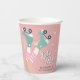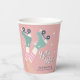 Des gobelets en papier pastel rose pastel amusants avec une illustration rétro de patins à rouleaux turquoises sur une fille portant des chaussettes à tube rayé rose et "Let's Roll" dans un script style années 70. Ajoutez son nom de typographie bleu turquoise foncé.