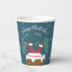 Quelques tasses de papier bleu pour votre fête de Noël avec un Père Noël à l'envers dans la cheminée sous l'oeil attentif d'un cardinal.Le texte dit "Joyeux Noël" mais vous pouvez le changer si vous le souhaitez. Ajoutez un couvercle si vous en voulez un ! © ArianeC Illustrations-Tous droits réservés