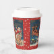 Père Noël est un peu patriotique en train de lever son drapeau américain en voyageant dans les airs le soir de Noël et en souhaitant à vos amis et à votre famille "Un joyeux Noël" sur ces tasses en papier.