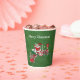 Ces tasses en papier sont vert foncé avec le Père Noël à bord d'un train de Noël rouge et blanc portant des sucres de canne et des lettres à Père Noël avec des bonbons de menthe poivrée. Customisez votre texte avec les modèles à l'avant et à l'arrière.
