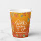 Celebrate the holiday with stylish Happy Thanksgiving paper cups featuring a warm autumn design with colorful fall leaves. These personalized Thanksgiving party cups can be customized with your family name, making them perfect for Thanksgiving dinner, fall gatherings, Friendsgiving parties, and harvest celebrations.