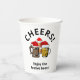 Trois Bravo Beers Tasses en papier CHRISTMAS avec TEXTE PERSONNALISABLE. Des tasses en papier de bières simples et élégantes montrant trois bières et des COULEURS ! en haut en texte courbe contre un arrière - plan blanc clair - chacune ornée d'un chapeau de Père Noël festif pour la saison de Noël. En bas, le texte PERSONNALISABLE dit PROFITEZ DES BIÈRES, et cela peut être changé à votre événement ou votre nom, etc (maximum deux lignes). Idéal pour les fêtes privées, les fêtes publiques, les fêtes de la bière de Noël, les fêtes de Noël, etc. D'autres versions, dont des drapeaux nationaux, des festivals de bière, l'Oktoberfest, etc., sont également disponibles. Les articles correspondants se trouvent dans la collection CHEERS AND BEERS de Berean Designs.